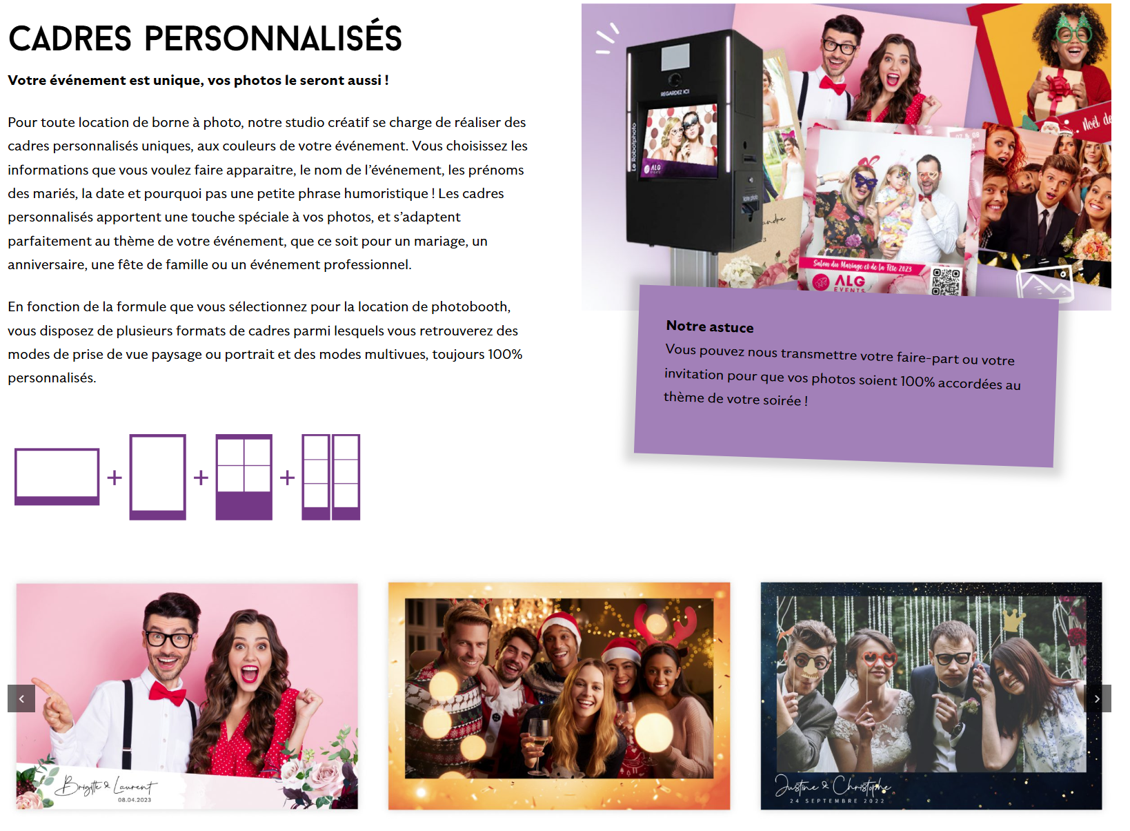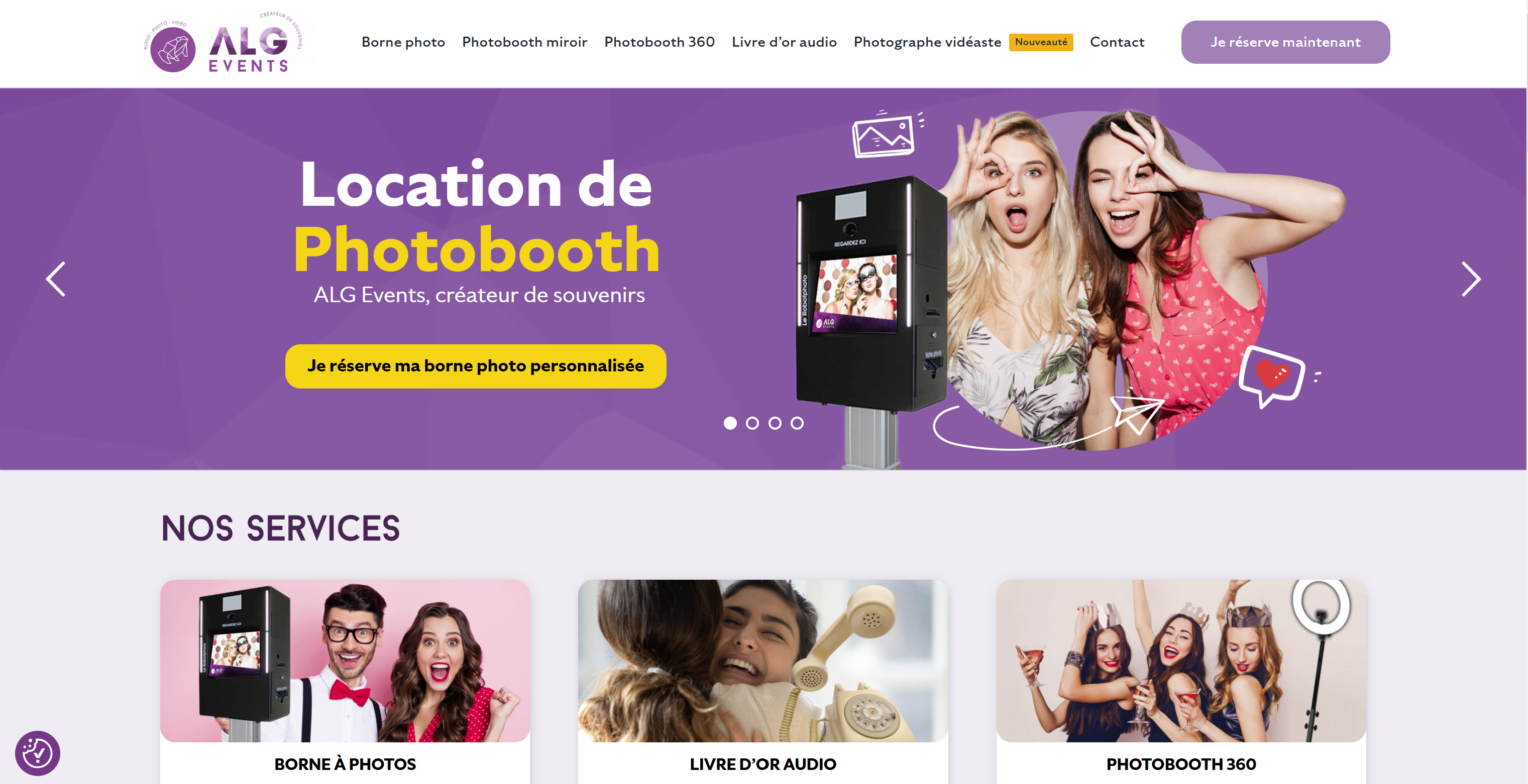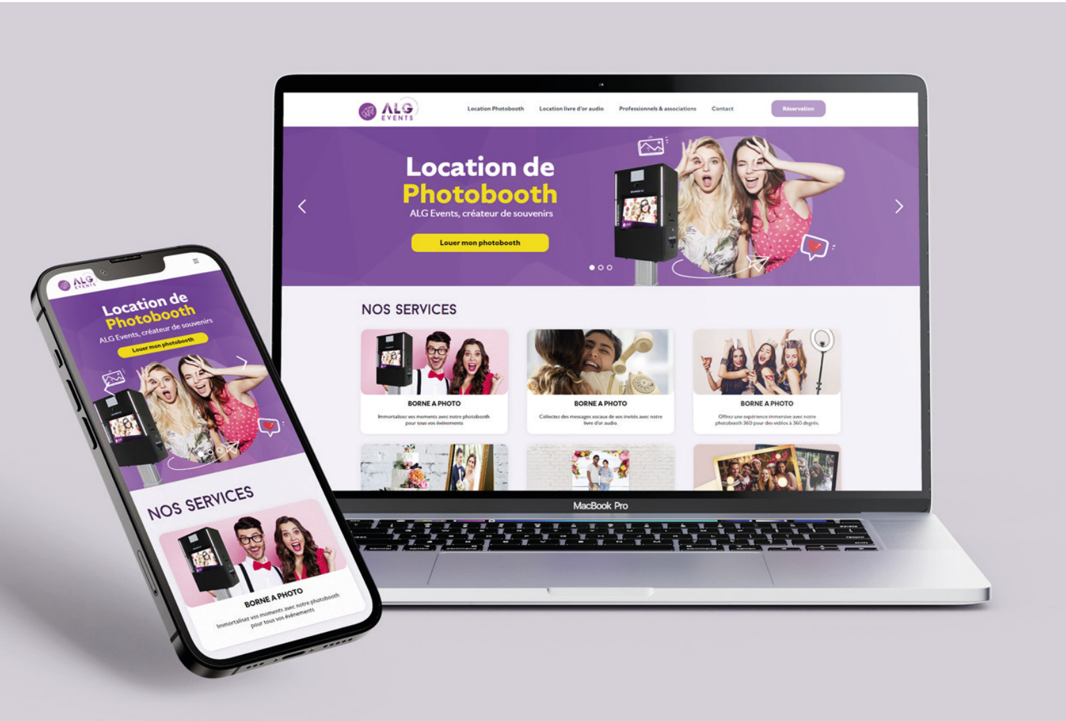 Création du site web pour ALG Event, entreprise spécialisée dans la location de photobooths personnalisés pour divers événements, de la maquette à l’intégration.