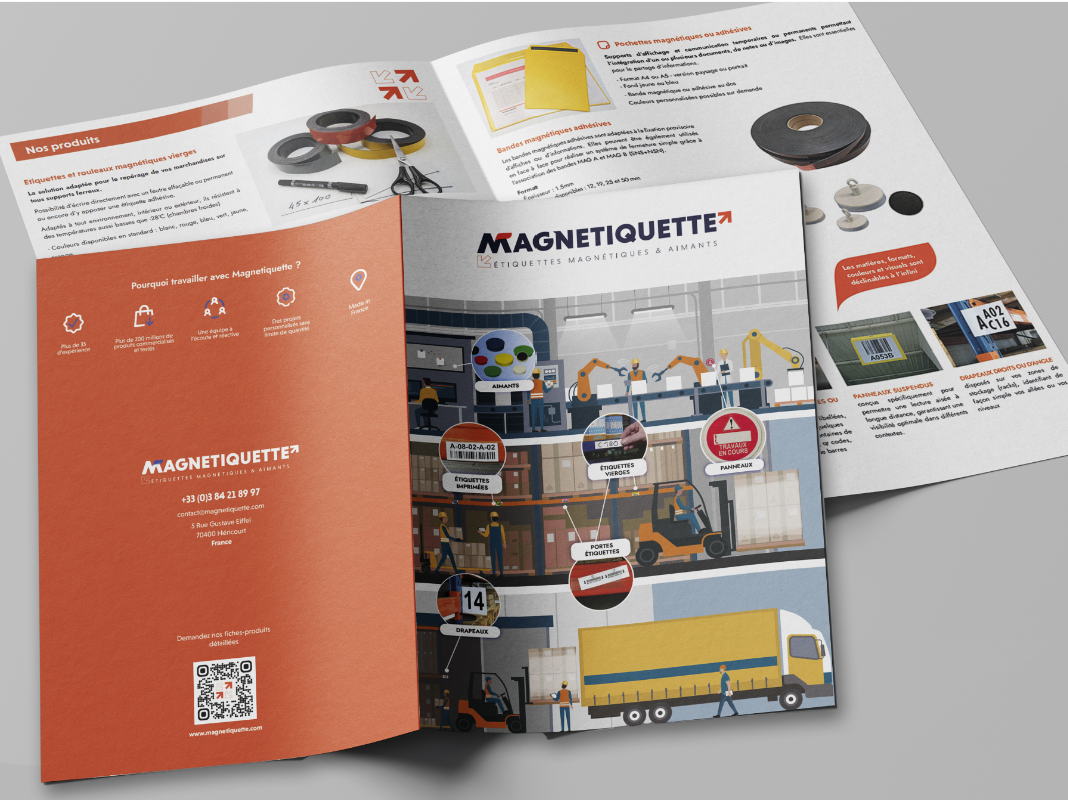 plaques et feuilles magnétiques aimantées, a choisi d’actualiser son identité graphique avec le concours de l’Agence 13ème Étage. Dans ce cadre, j’ai réalisé la plaquette de présentation de la société.