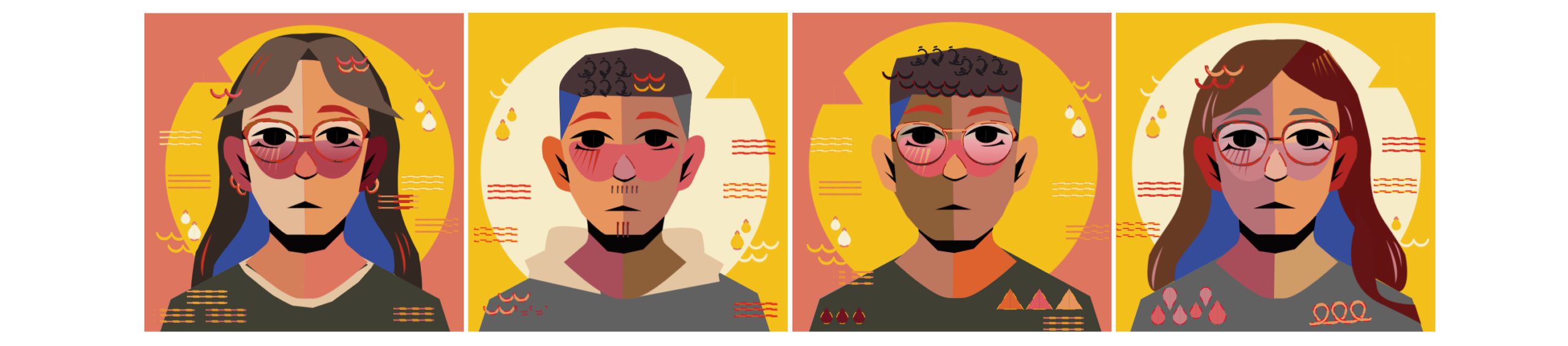Pour la création des portraits, une charte graphique a été élaborée afin de capturer l'aspect convivial et chaleureux tout en maintenant une esthétique graphique commune. En parallèle, une recherche sur des formes abstraites correspondant à chaque personne, dans le but de les rendre uniques et dynamiques. Ces formes abstraites ajoutent une dimension de mouvement et de personnalité à chaque illustration.