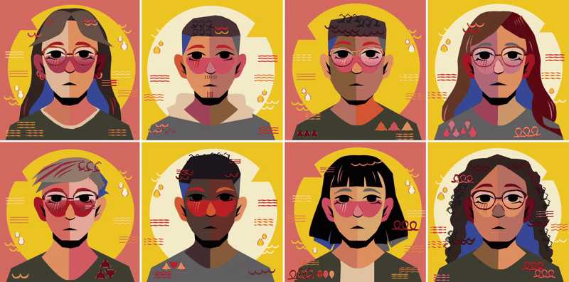 Illustrations et animations en SVG réalisées sur Illustrator, représentant graphiquement les portraits des étudiants MMI.
