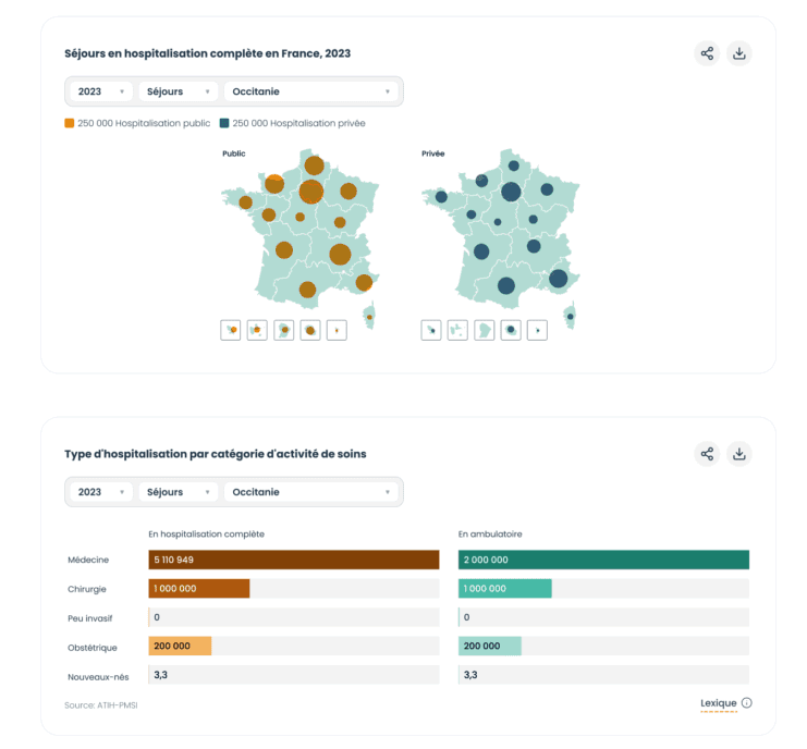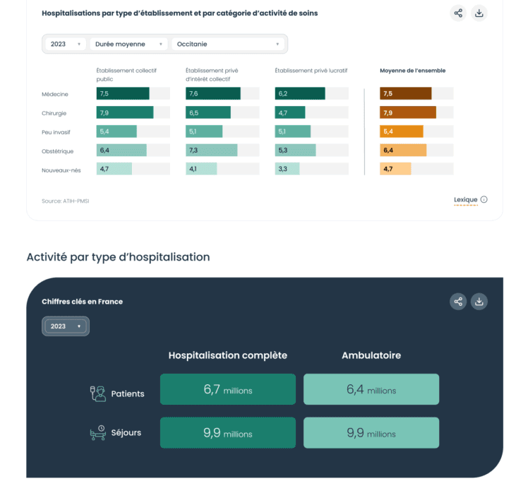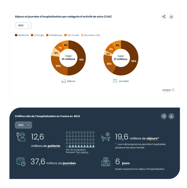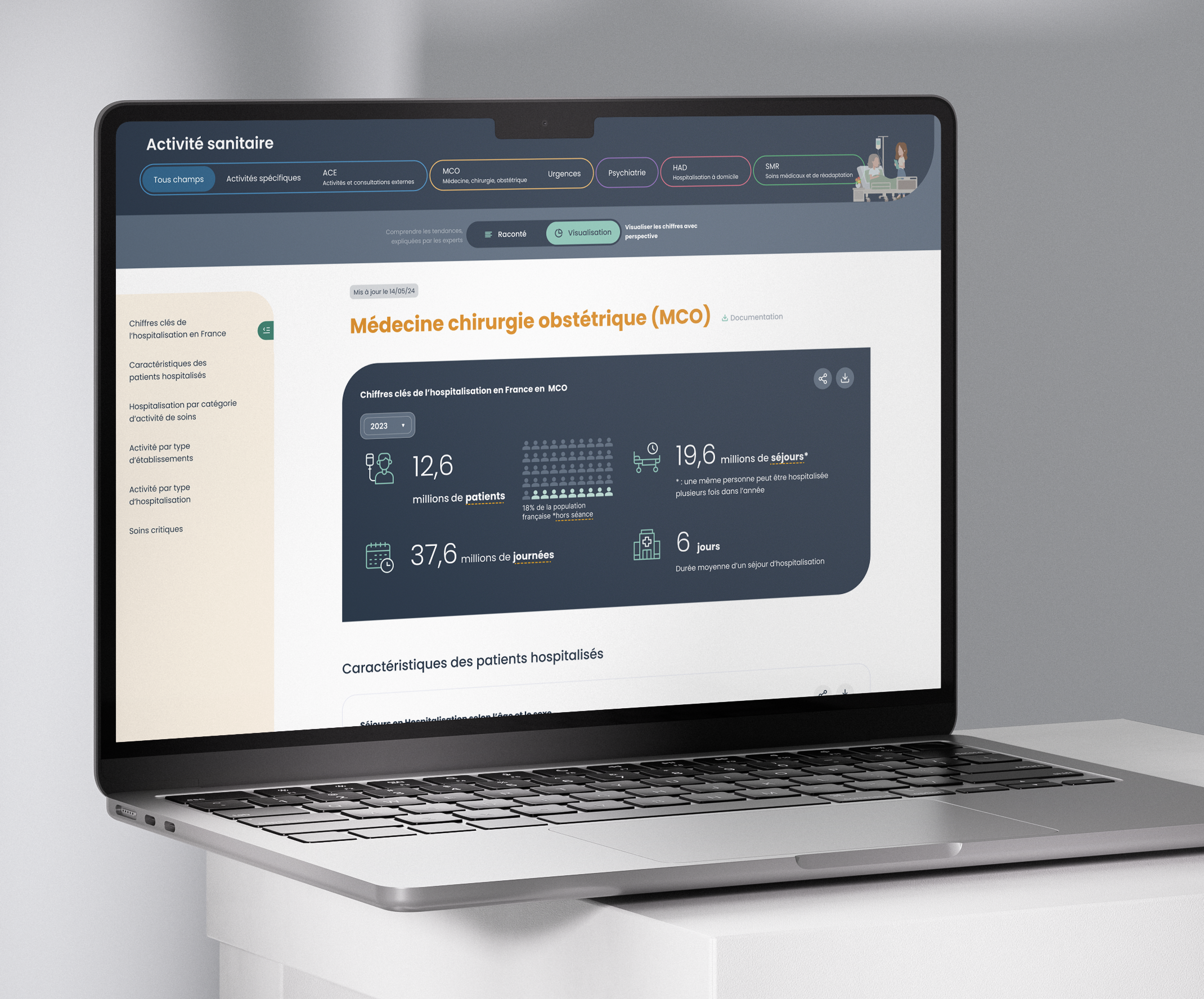 Dans le cadre de mon stage, j’ai conçu un site web de visualisation de données de santé et d’hospitalisation. L’objectif principal était de proposer une interface claire, accessible et conforme aux demandes des clients, en mettant l’accent sur l’expérience utilisateur (UX) et l’interface utilisateur (UI).