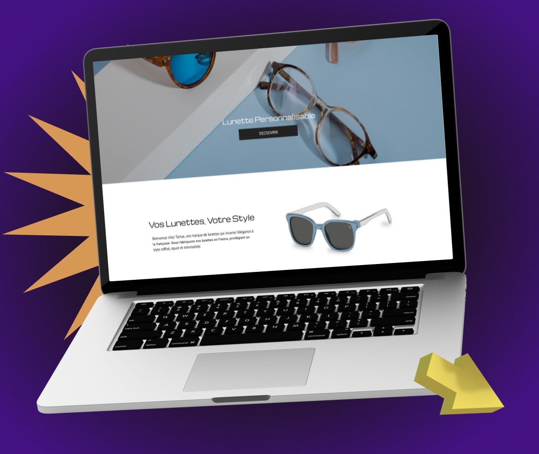 J'ai conçu une maquette avec un design minimaliste, privilégiant la simplicité et l'efficacité. Les images modernes et les couleurs neutres utilisées évoquent l'ambiance citadine et la praticité. J'ai également intégré un élément de personnalisation des lunettes. Une étape complexe qui a nécessité une simplification pour pouvoir aider à l'intégration de celui-ci dans un site par la suite.